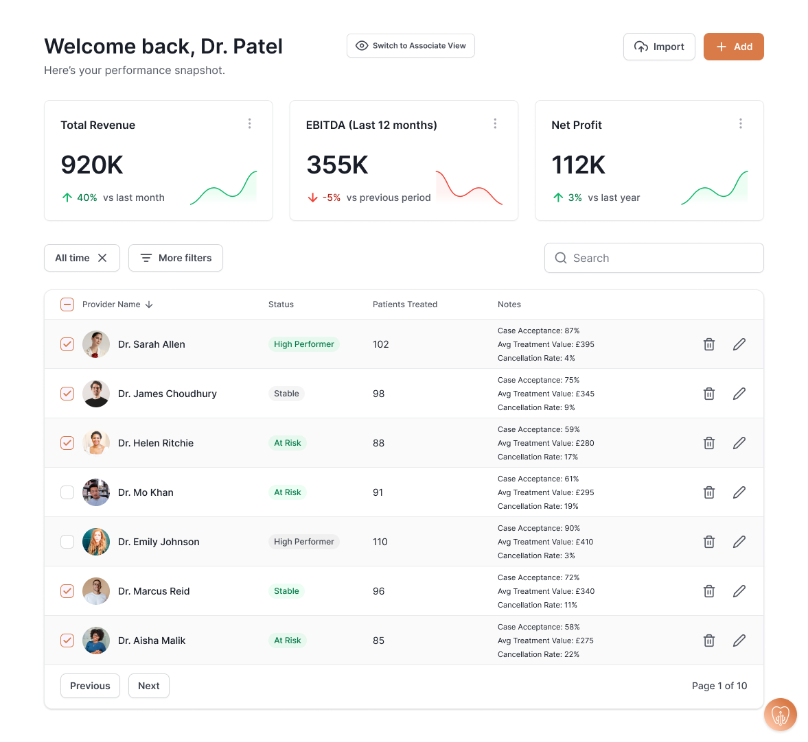 Always in a good mood, ask anything from “How’s my hygiene revenue trending?” to “Which provider has the highest cancellation rate?” and get instant, insight-rich answers backed up by real data.